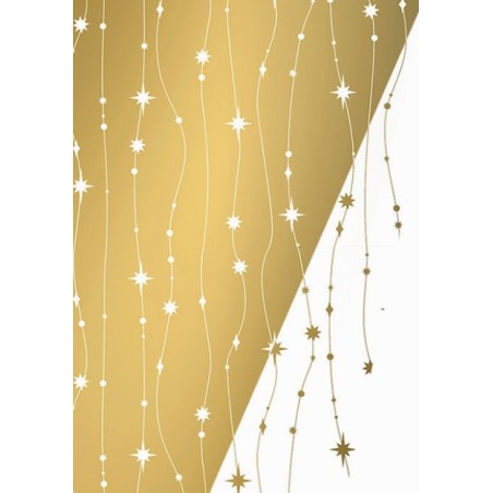 Beautiful coated wrapping paper Stars are falling in the color gold and white falling stars. Back is white with gold stars. Very nice wrapping paper with a chic look, ideal for the holidays.