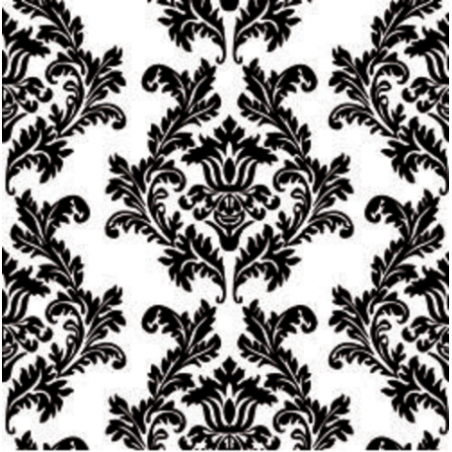 Deze luxe papieren lunch servetten hebben een prachtig barokpatroon met een zwarte print op een witte achtergrond. Het gedetailleerde ontwerp bestaat uit symmetrische bloemen en bladeren, die zorgen voor een klassieke en stijlvolle uitstraling. De combinatie van zilver en wit geeft een elegante en verfijnde sfeer aan elke tafelopstelling, ideaal voor feestelijke gelegenheden of om je dagelijkse maaltijden een vleugje klasse te geven.